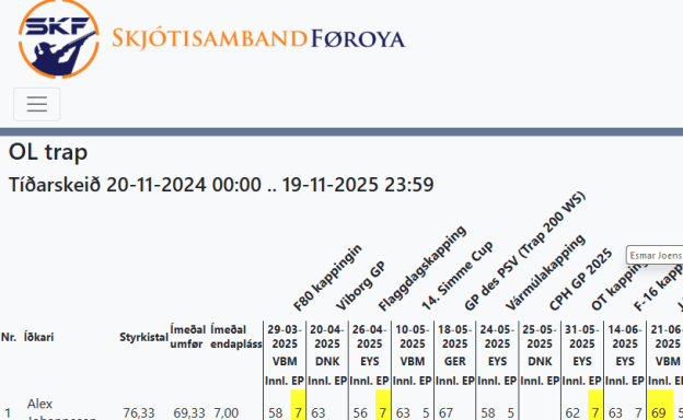 Á starvsnevndarfundi tann 18. november 2025, bleiv avgjørt at fara aftur til gamla OL trap styrkislistan, har 3 kappingar telja við, óansæð hvar tær eru skotnar.